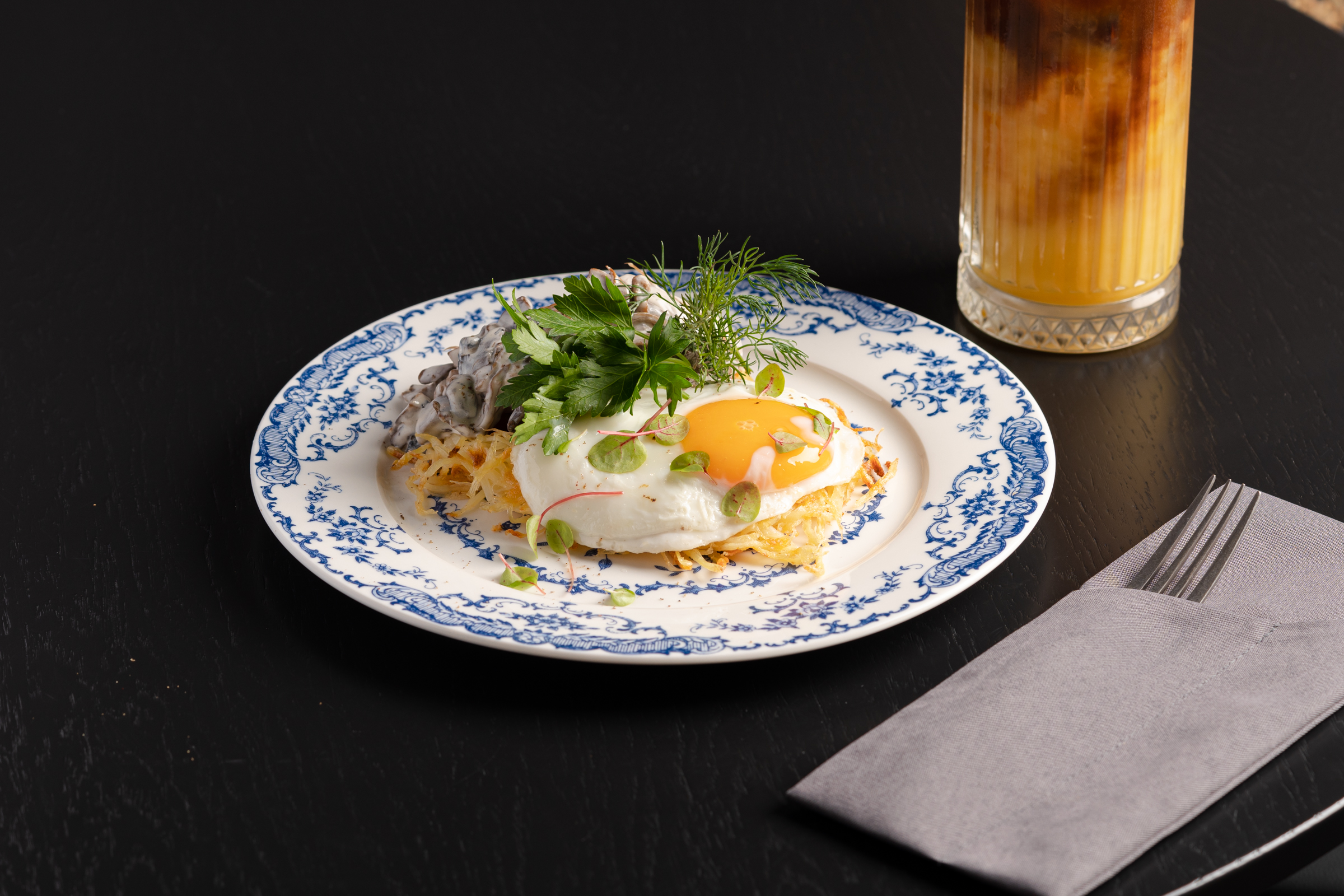 Драник-вафля с грибами в сливочном соусе, яй...