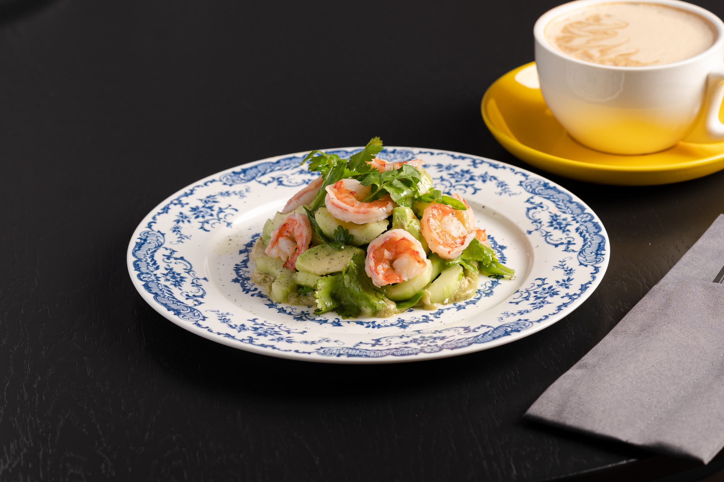 Салат с креветками и муссом из авокадо