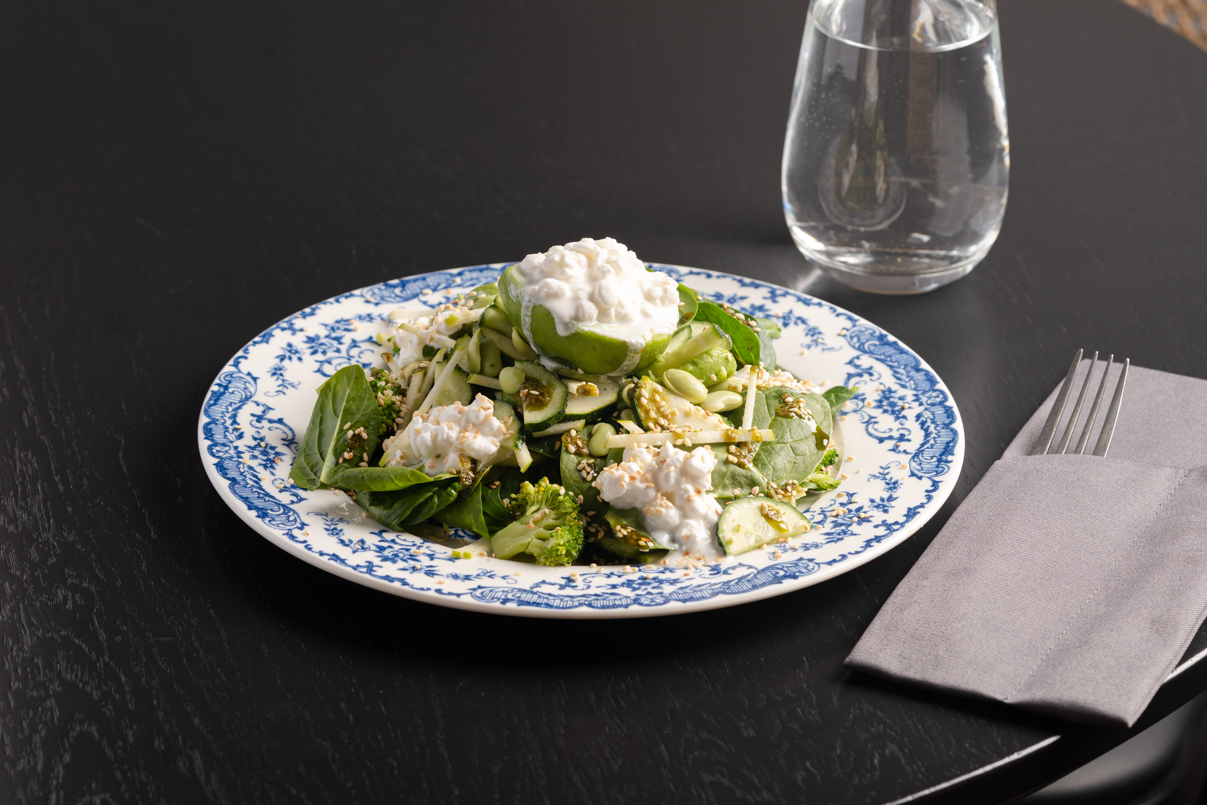 Зелёный салат с зернёным творогом