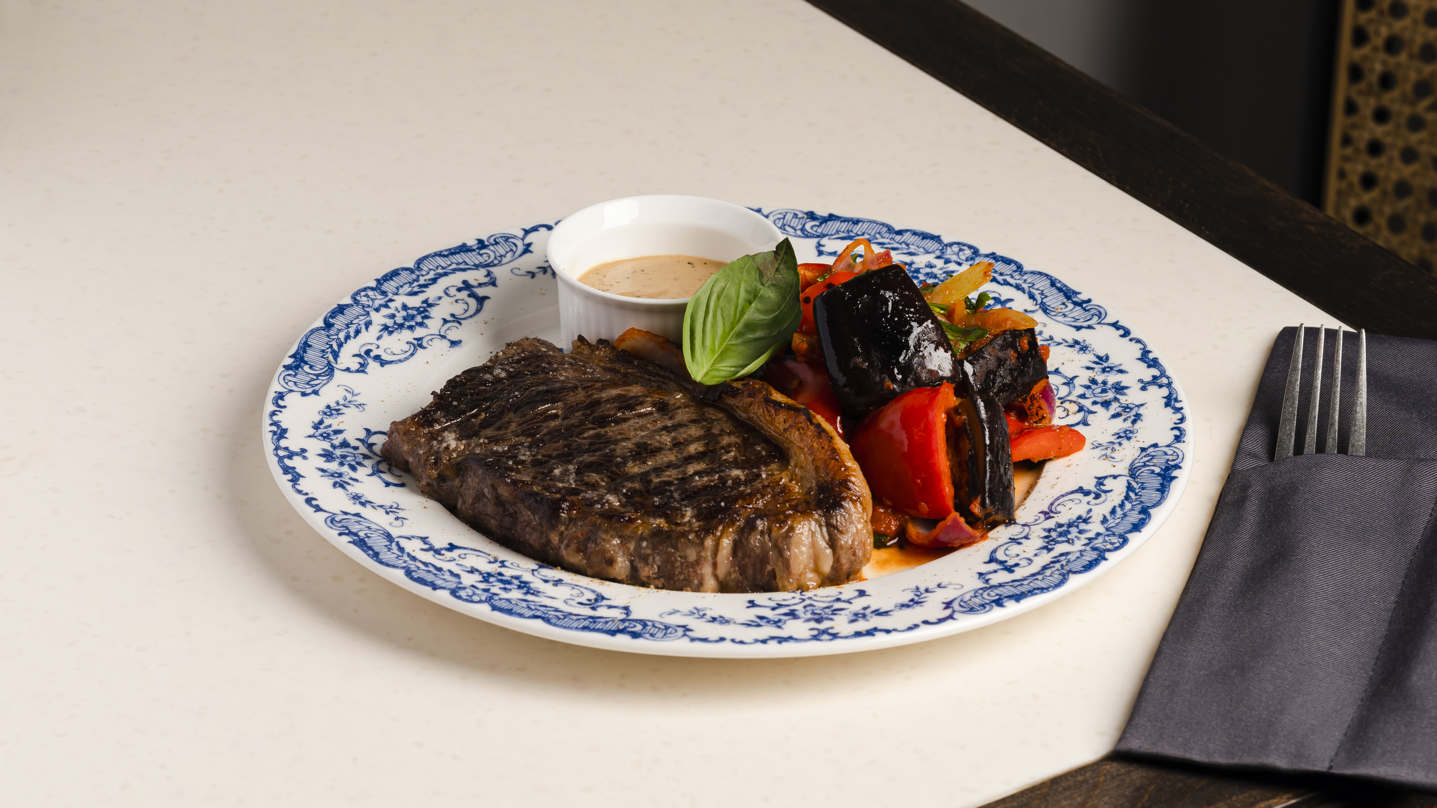 Стейк стриплойн с овощной капонатой